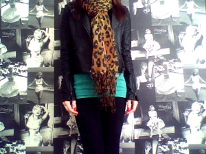 Leather Jacket; Topshop, Tan Boots; Primark, Leopard Print Scarf; H&M