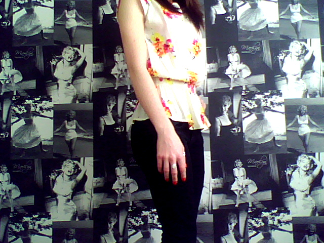 I bought this lovely little top for only £10 on sale in River Island. It is yet another eastern inspired piece I had to add to my wardrobe. It has beautiful oriental style flowers all over it – so cute. I teamed it with simple black skinnies and my tan boots from Primark. If it had been summer and warm I would have slipped on my cute purple courts I bought in the New Look sale to add a pop of colour.