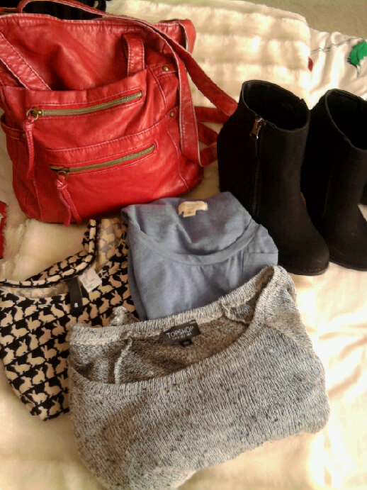 Red Handbag; Claires Accessories, Black Boots; New Look, Rabbit Tunic; H&M