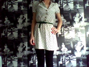 Who doesn’t love a pretty floral tea dress? I bought this beauty in the Topshop sale last Summer. It is versatile enough to wear with sandals in the summer or tights and boots in the winter. I wrapped this green H&M belt around my waist to add a dash of colour, and I completed my outfit with some black boots I bought in New Look last week.