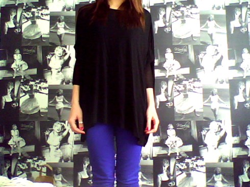 I haven’t been able to stop wearing these blue jeans since I got them. I just love the instant pop of colour they give to any outfit. Today I have teamed them with my cape top which is from ASOS. I completed my look with my studded slippers from Topshop.