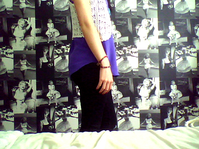Purple Silk Top; French Connection, Skinny Jeans; Topshop