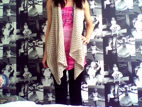 Pink Tie Dye Top; Boohoo.com, Gray Vest; H&M