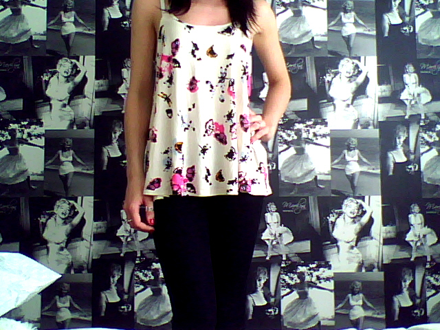 This isn’t a new picture but it is what I am wearing today! It is a horrible rainy day here, we have that terrible ‘light’ rain that ruins your hair no matter how hard you try to shield yourself with an umberella! I thought this cute butterfly top would brighten up my day. I have toughened up my look by teaming with my Miffin Biker Boots from Topshop and my ever faithful leather jacket.