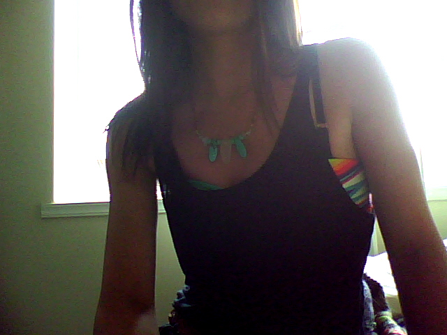 Not much time for an outfit post this morning but I managed to snap a quick picture! It is very similar to yesterday as I am all in black (I don’t know what it is with me and black at the moment!) I am wearing my beautiful aztec bandeau from Forever 21 fors the first time. It gives a pop of colour to my outfit. I am obviously wearing my new sea glass necklace….it is love!