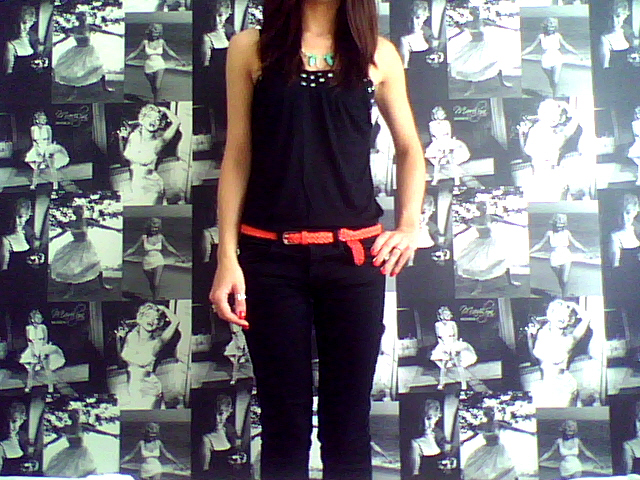 Skinny Jeans; Miss Selfridge, Coral Belt, Dorothy Perkins