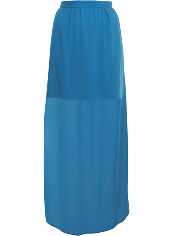 I spotted this beautiful Blue Chiffon Style Maxi Skirt in Miss Selfridge today. I would team it with a grey coloured vest top and some tan coloured sandals!