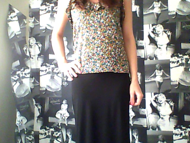 Floral Top; H&M, Black Maxi Skirt; Topshop