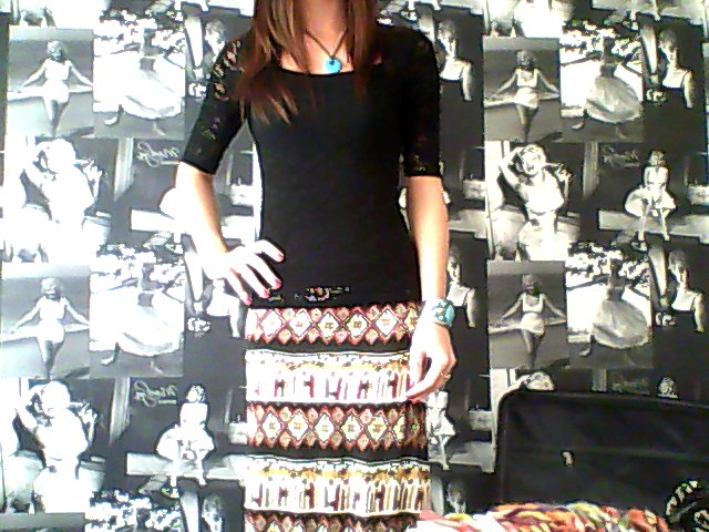 Hi guys! I had some good news today & I will give you more details about that soon. I am wearing my African maxi skirt again today & this time I have teamed it with a black lace top. I got the lace top in the sale from River Island last month. It was a bargain at only £10.00. I also picked up some amazing bargains today also, including another maxi dress which was a total steal.