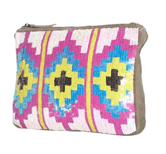 Just another quick post about yet another treasure from Topshop. I just spotted this Aztec Sequin Clutch Bag & it instantly went onto my Must Have List. I love the colours & as you already know, I adore aztec prints!