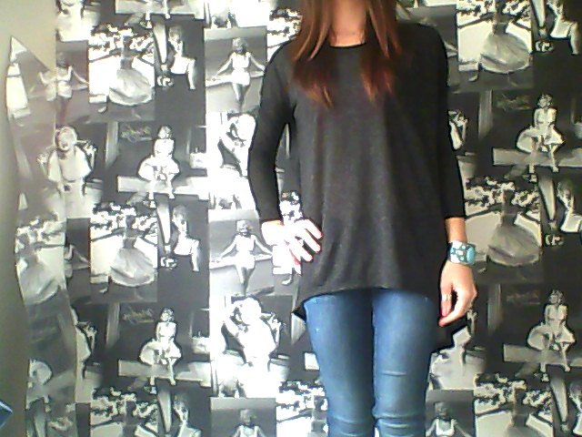 Grey Dipped Hem Top; Primark, Skinny Jeans; Miss Selfridge