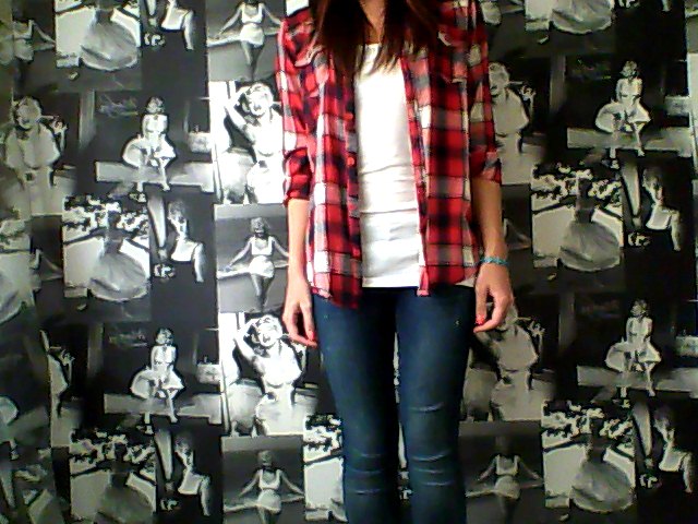 Good Evening Readers! I have had a busy weekend & Bank Holiday Monday as I have been working so hard & not had time to update my blog when I arrived home. I wore this outfit on Saturday after I finished work. It was casual & easy to throw on which is what you want after a long shift at work. I bought this cute shirt from Tesco Clothing & I think it will be really great for creating a grunge look. This time however I simply teamed it with a simple white vest & skinny jeans.