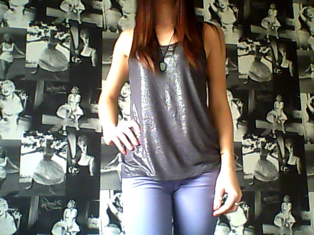 Silver Vest; H&M, Cornflower Blue Skinny Jeans; Miss Selfridge