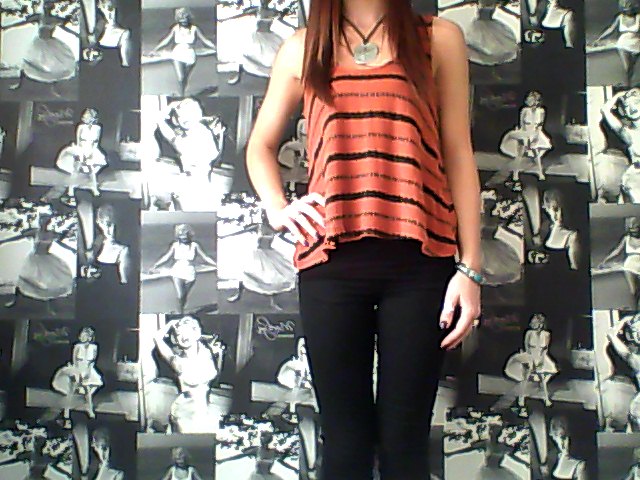 Orange Knit Vest; Urban Outfitters, Black Skinny Jeans; Miss Selfridge