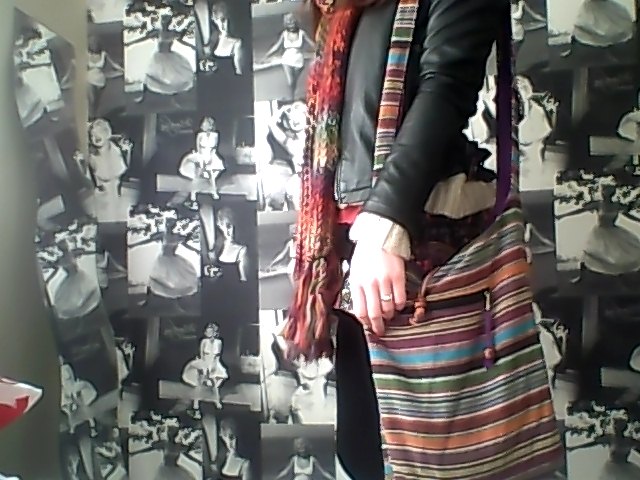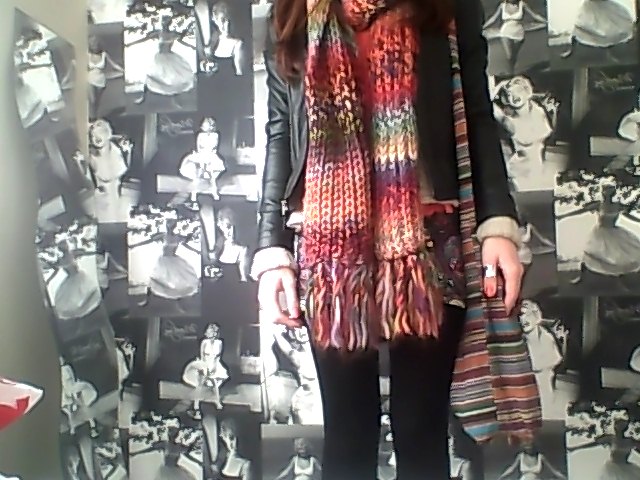 Leather Jacket; Miss Selfridge, Multi Colour Scarf; Matalan