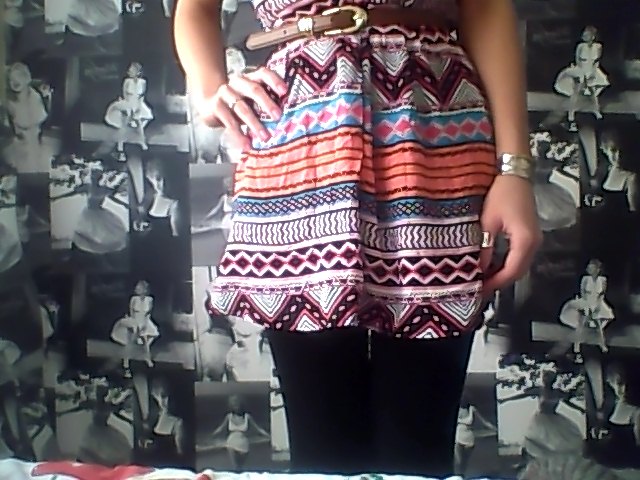 Aztec Dress; H&M, Tan Belt; Therapy