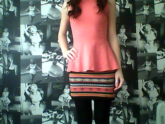 Coral Peplum Top; New Look, Fairisle Skirt; Miss Selfridge