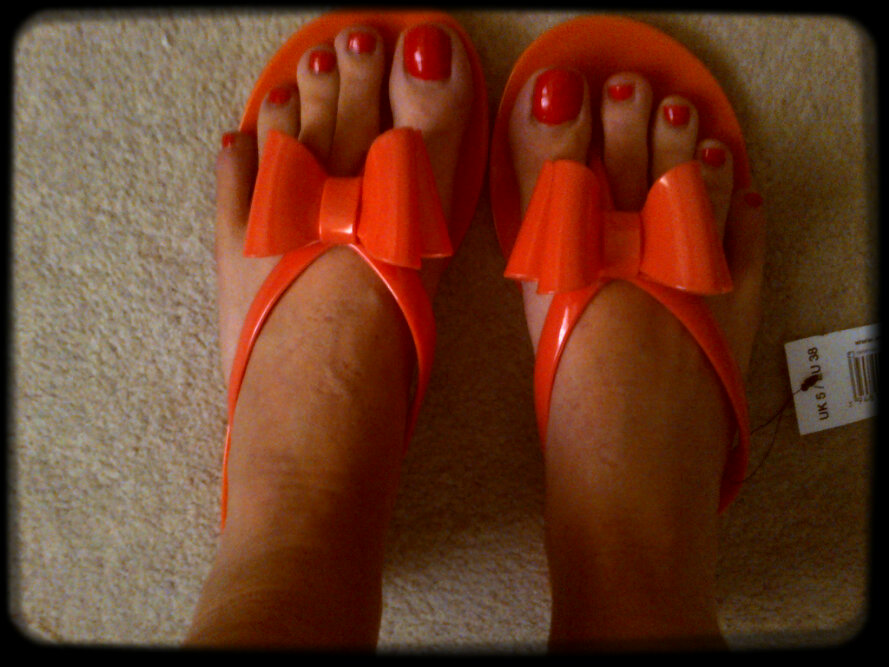 As I mentioned in my last post I managed to pick up some cute flip flops in Matalan for only £3.60! I first saw these Bow Toe Post Jelly Sandals last weekend. I fell in love with the coral colour & for only £4.00 I really wanted a pair. Sadly they didn’t have my size & so I walked away disappointed. Today I went into Matalan with my Mum, we had a 10% off discount card & I walked straight over to the flip flops.