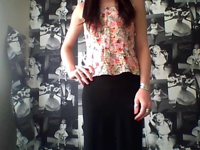 Floral Top; New Look, Black Maxi Skirt; Topshop