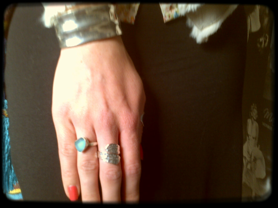 I accessorised with my favourite vintage cuff & a sea glass ring I bought from Etsy. I also wore other silver rings that I wear on a regular basis.