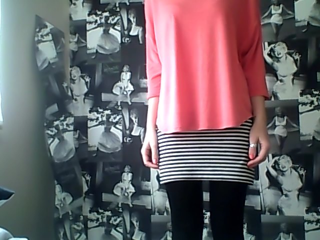 I teamed this simple coral sweater with a cute stripe skirt I bought from H&M. H&M are great for wardrobe staples such as this skirt. I bought some new ombre rings & a yellow bandeau from them today because my Mum was ordering some things. They were both so cheap, so it isn’t a cheat on my saving!