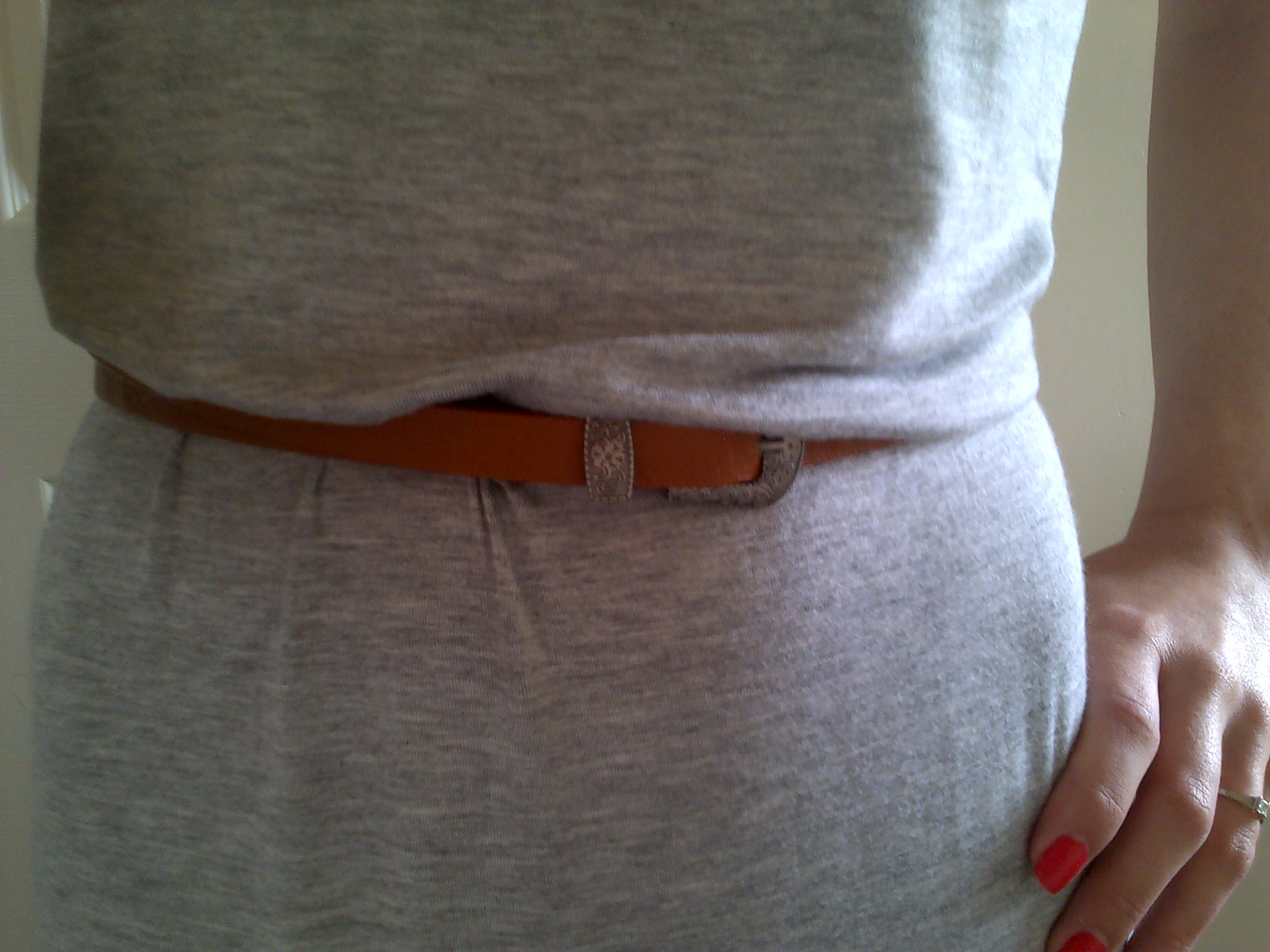 Grey Maxi Dress; Love Label, Tan Western Belt; New Look