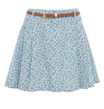 Parisian Light Blue Pleated Belted Daisy Print Skirt