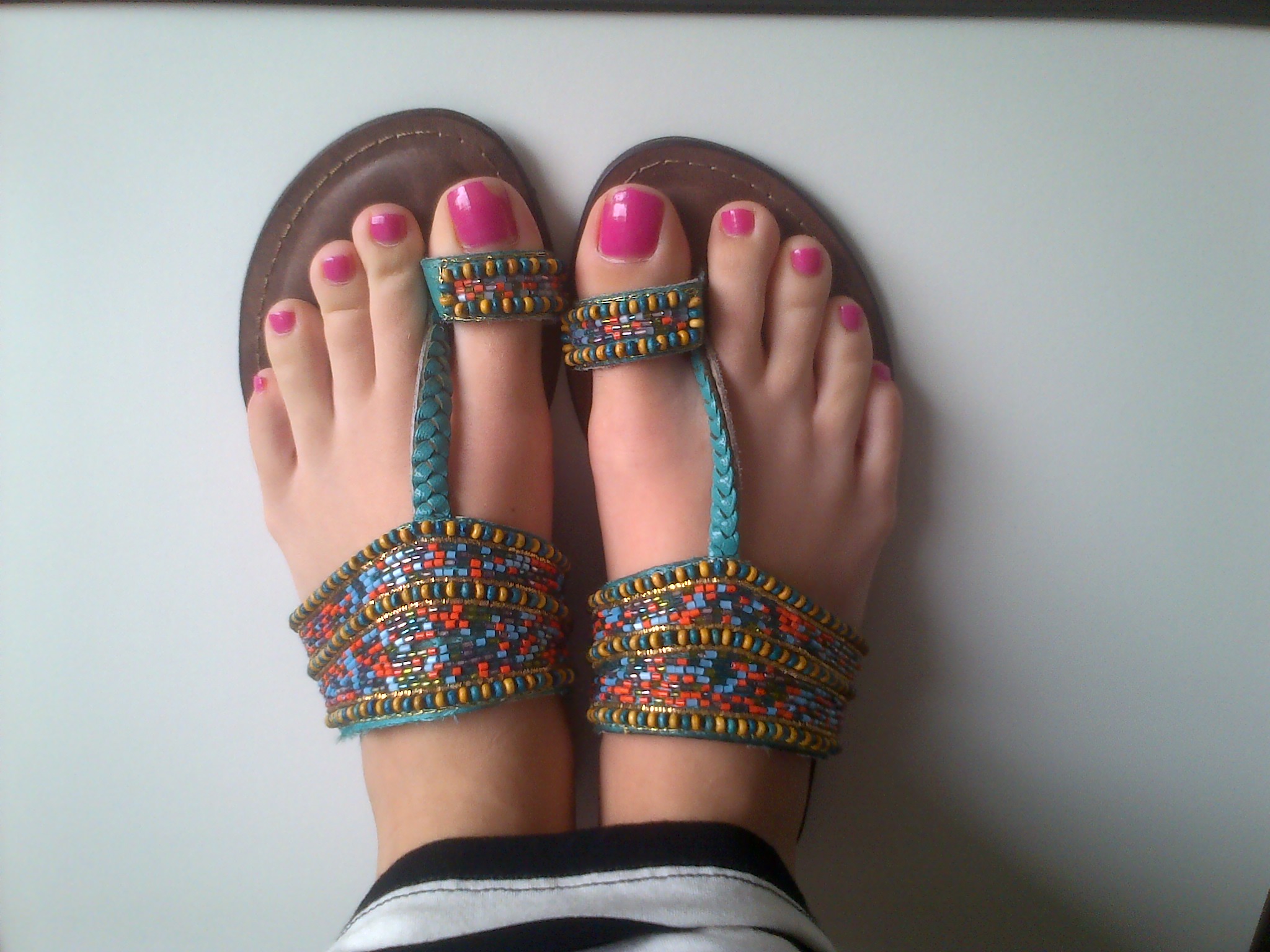 Aztec Print Bag; Miss Selfridge, Beaded Sandals; Primark