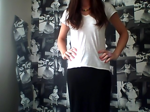 White T-Shirt; River Island, Black Maxi Skirt; Topshop