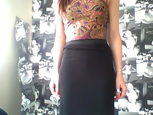 Paisley Print Crop Top; New Look, Black Maxi Skirt; River Island