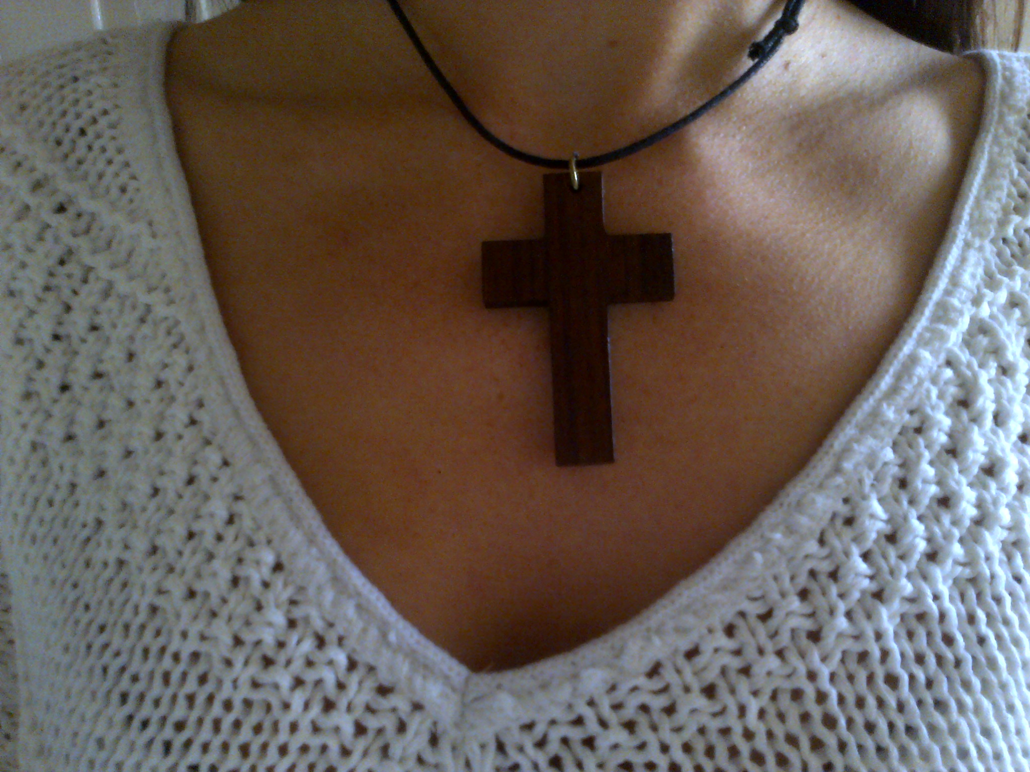 I wore a white knit seater & skinny jeans, a simple outfit but it kept me warm & worked well. I teamed my outfit with a Wooden Cross Necklace that I made myself.