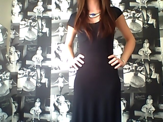 Black T-Shirt Maxi Dress; Very.com, Necklace; Primark