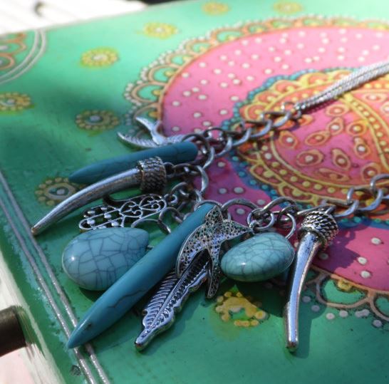 I also added this beautiful Hamsa, Tusk & Turquoise Necklace. Bohemian at its best!