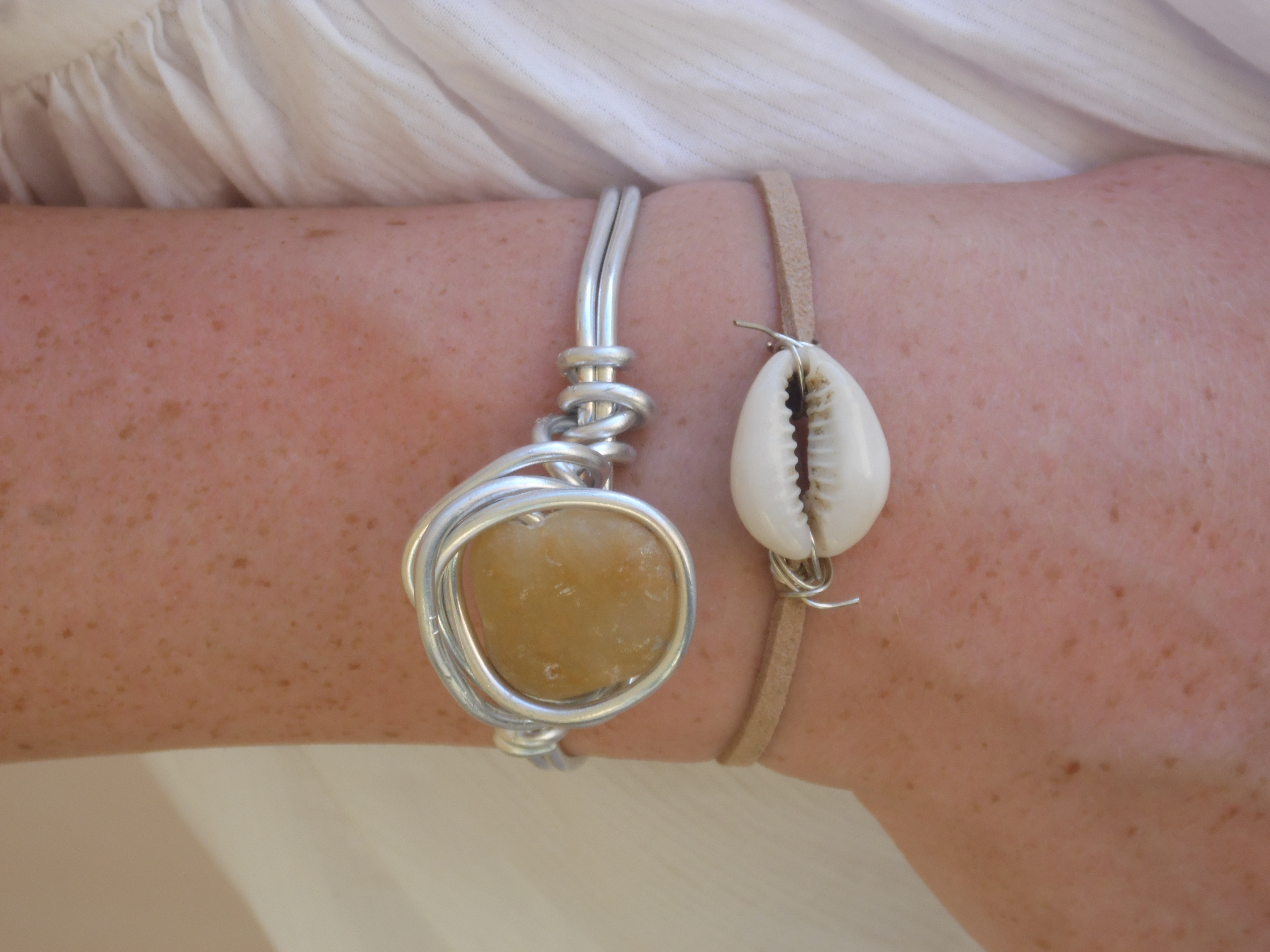 The pebble cuff & shell bracelets were handmade by me & they are perfect for Summer & the beach!