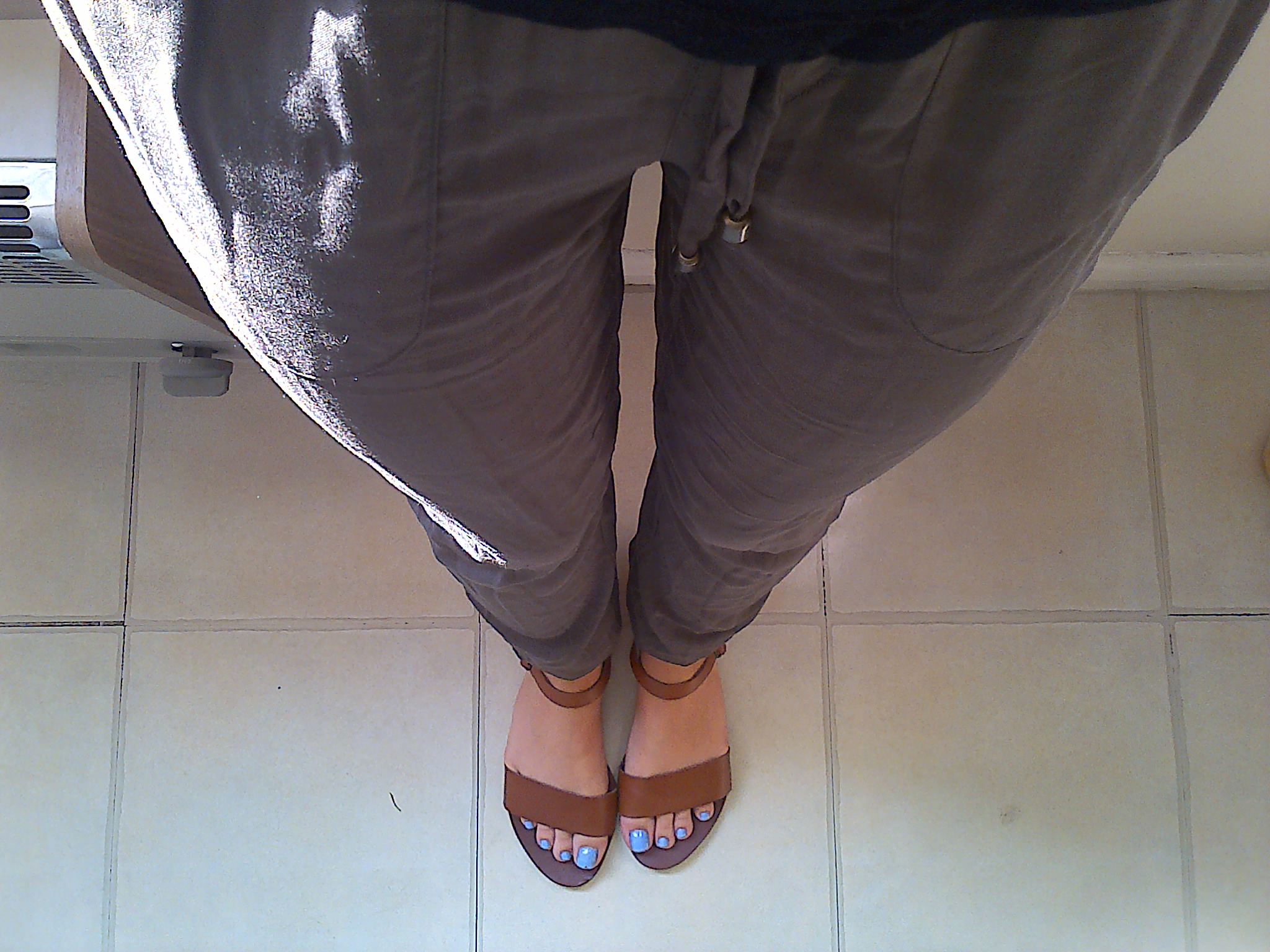 Black T-Shirt; Topshop, Khaki Pants; Primark, Sandals; Topshop