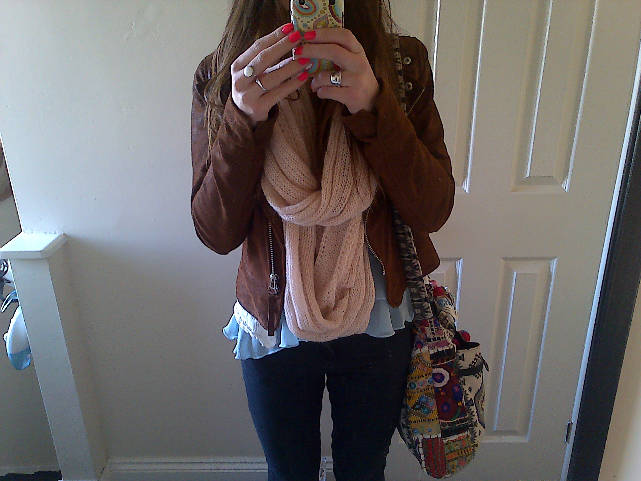Suede Jacket; New Look, Snood; Primark, Boho Bag; Natura