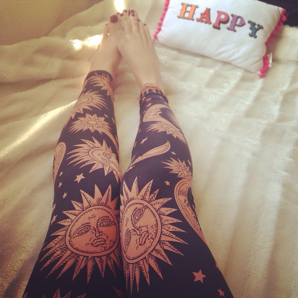 I was wearing my favourite leggings today. I love these celestial leggings that I bought from a company on eBay last year. They bring out the hippie in me!