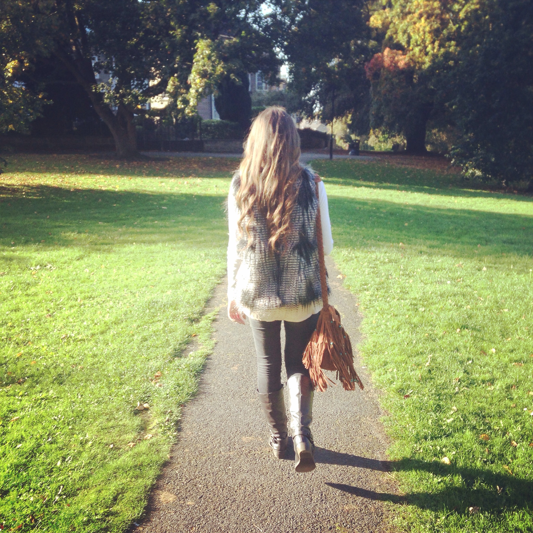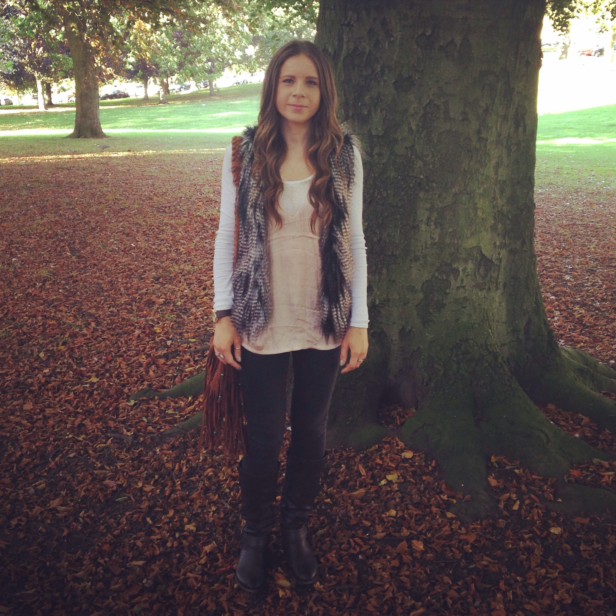 I wore my Fur Gilet which I purchased recently from H&M. Underneath I wore my gorgeous Silk Top which is also another purchase from H&M. I had to layer a long sleeve white top underneath, even though it turned out to be so warm! I completed my look with black skinny jeans, boots & my tan fringe bag.